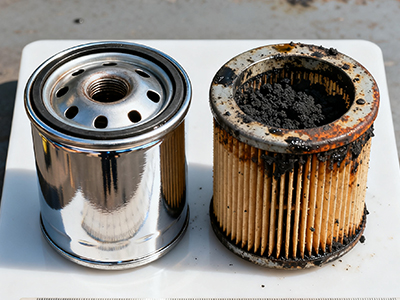 机油压力是发动机润滑系统的“生命线”,而机油滤清器的堵塞与机油压力异常之间存在直接且关键的因果关系。准确解读这一“警报”,能避免灾难性故障。 一、堵塞与压力关系的机理 机油泵从油底壳泵出机油,输送至滤清器,经过过滤后再进入主油道,润滑各个摩擦副。滤清器在设计时,其流通阻力(压降)被控制在一定范围内。当滤芯因吸附污染物而逐渐堵塞时,机油流经的阻力会增大。为了维持主油道必需的压力,机油泵需要做功更多,表现为滤清器进油口的压力升高,而出油口的压力有下降趋势。 二、堵塞的两种警报模式 滤清器设计了旁通阀作为安全装置。其工作状态直接决定了机油压力的异常表现模式: 警报模式一:机油压力表显示值异常升高(旁通阀未开启) 机理:当滤芯严重堵塞,流通阻力极大,需要旁通阀开启建立旁路时,如果旁通阀本身因制造缺陷、污染物卡滞或弹簧失效而无法打开,机油将极难通过滤清器。 现象:机油压力表(通常测量的是滤后压力或主油道压力)的读数可能不降反升,达到一个异常的高位。这是因为机油泵为了对抗巨大的阻力而疯狂“憋压”。 本质:此时的高压是一种“假象”。主油道的实际机油流量严重不足,发动机各摩擦副(如曲轴轴承、凸轮轴)正处于“干磨”或润滑不良的极度危险状态。仪表的高读数具有极大的欺骗性,若不及时处理,短时间内就会导致轴承烧毁、拉瓦等致命故障。 警报模式二:机油压力表显示值降低(旁通阀已开启) 机理:当滤芯堵塞到一定程度,进/出口压差达到设计值(通常为1.0-1.5 bar)时,旁通阀被顶开,机油不经过滤直接进入主油道。 现象:机油压力表的读数会从正常值下降到一个偏低的水平。因为旁路提供了通道,泵油阻力减小。 本质:这是设计中的“安全模式”,用牺牲过滤效果来保证基本的机油供应,避免立即抱轴。但这是后的警告!此时未经滤清的、含有大量磨屑和污染物的机油正在泵送至发动机全身,会急剧加速所有精密部件的磨损。必须立即停机更换滤清器和机油。 三、诊断与应对流程 当发现机油压力异常时: 立即核实:检查机油油位是否正常,仪表本身是否失灵。 初步判断: 若压力异常高企,极度危险,应立即停机,重点检查机油滤清器及其旁通阀。 若压力明显降低,但发动机尚可运行,应意识到已进入“旁通模式”,需在保证安全的前提下立即安排停机维护。 核心操作:无论哪种情况,一旦压力异常与滤清器相关,唯一的正确处理方式就是:更换机油滤清器和机油,并检查旧件,查找根本原因。 理解滤清器堵塞与机油压力异常的复杂关系,是将一名设备维护人员从被动维修提升到主动诊断和预防故障的关键一步。